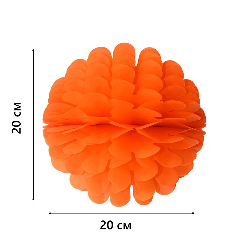 Бумажное украшение Цветочный шар-соты 20 см, оранжевый