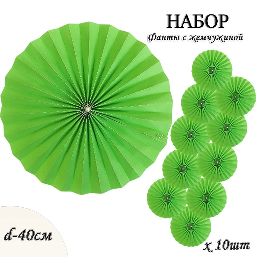 Фанты с жемчужиной НАБОР 10шт х 40см, св.зеленый