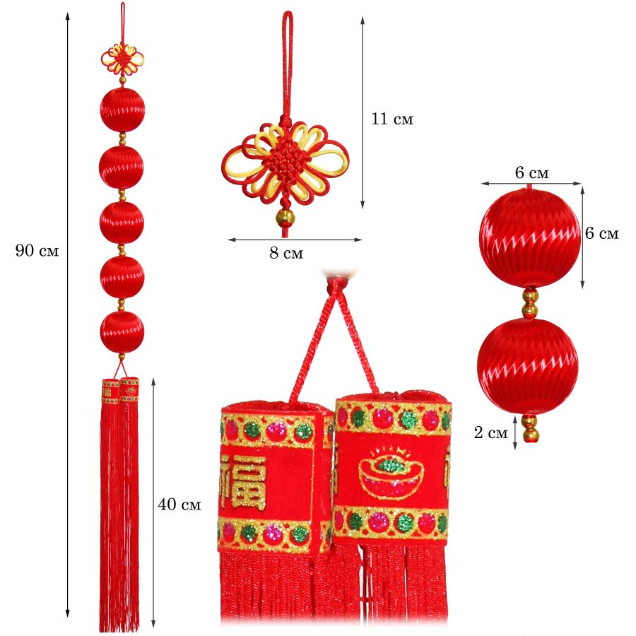 Китайская подвеска шары красные 6х90см