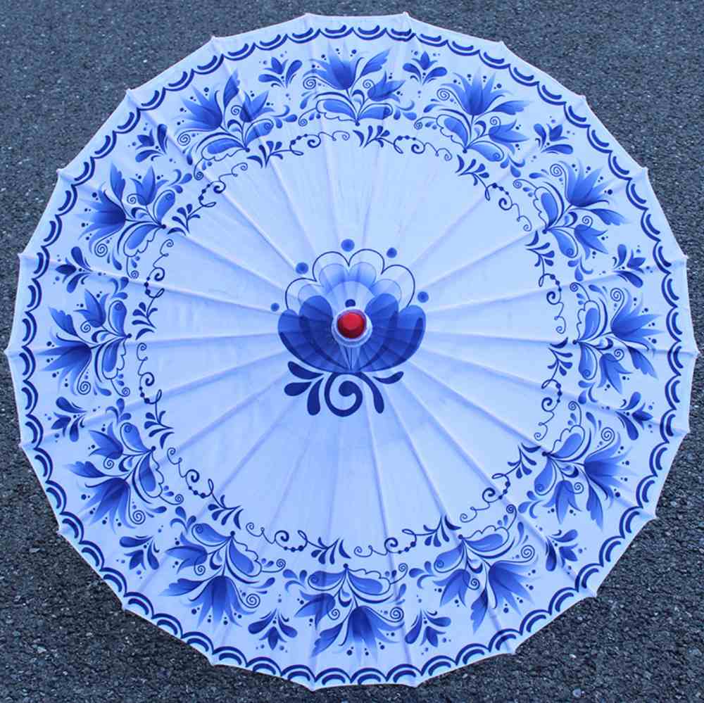 Китайские тканевые зонтики Гжель 82х54 см