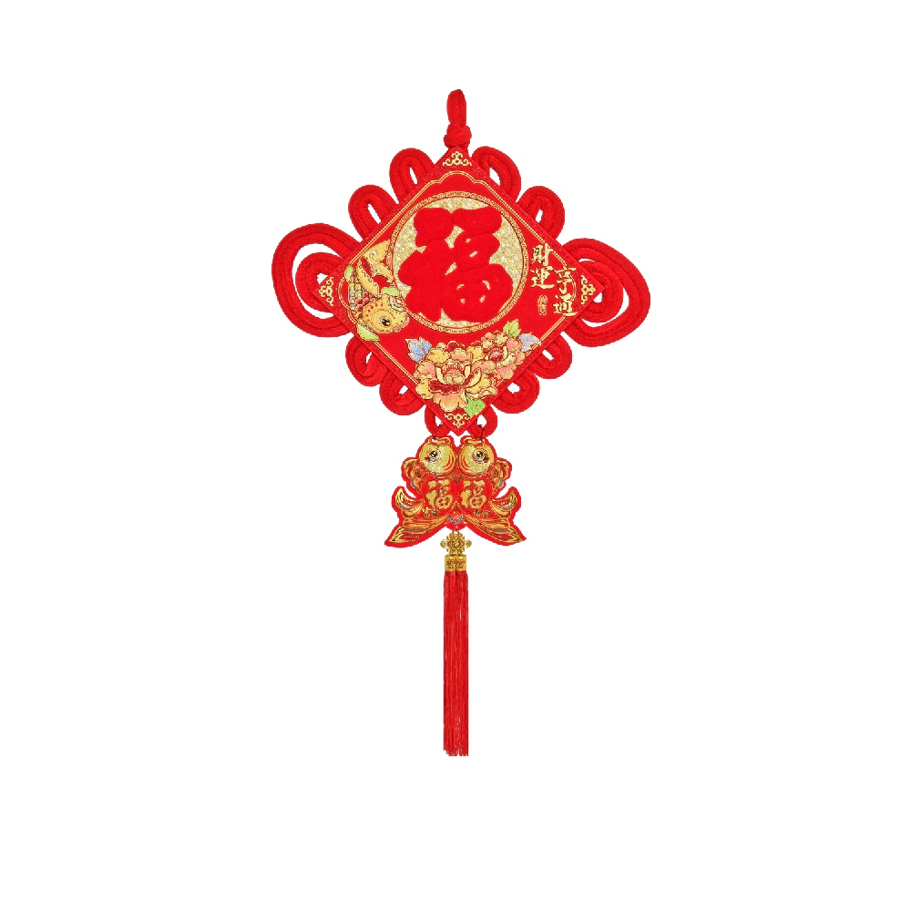Традиционный китайский узел в форме ромба с символичным дизайном. Яркое сочетание красного бархата и золотых элементов создает эффектный акцент в интерьере.