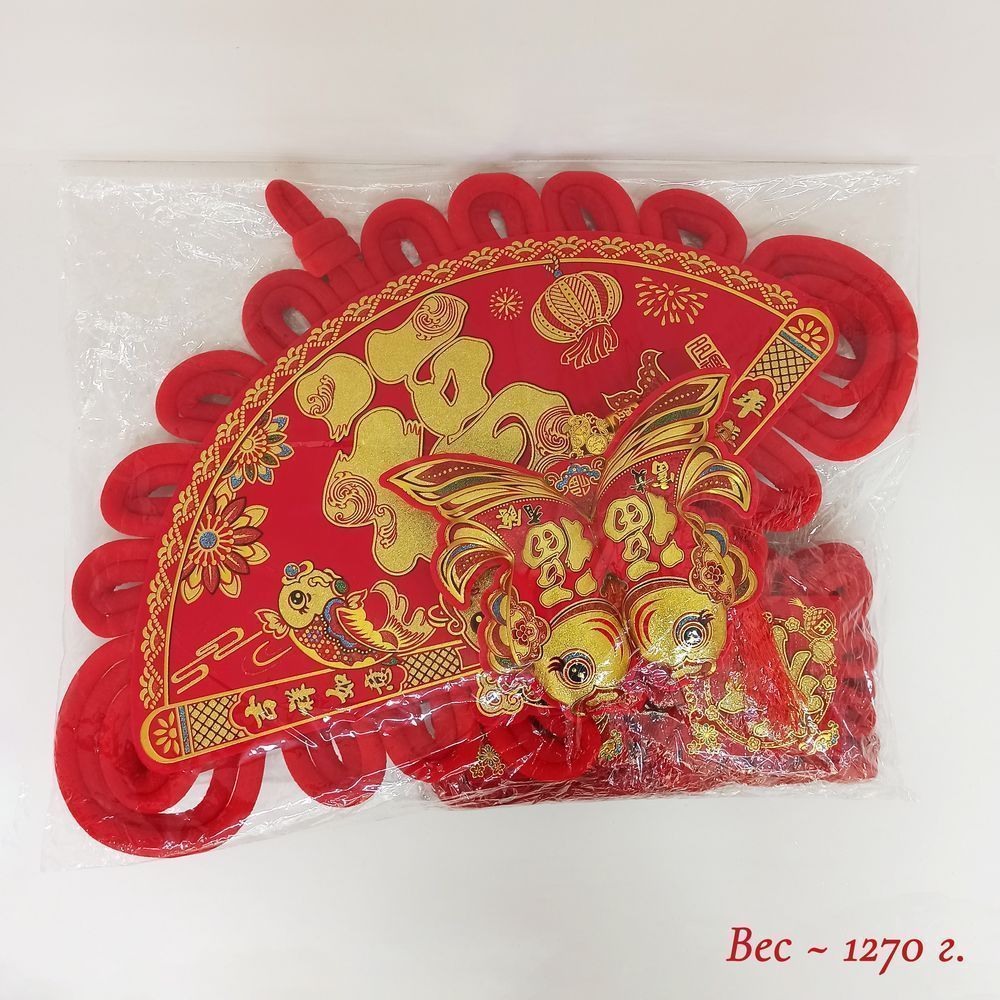 Китайский узел веер золото НАБОР 2шт (80х118см + 23х112см) рыбки, Богатство