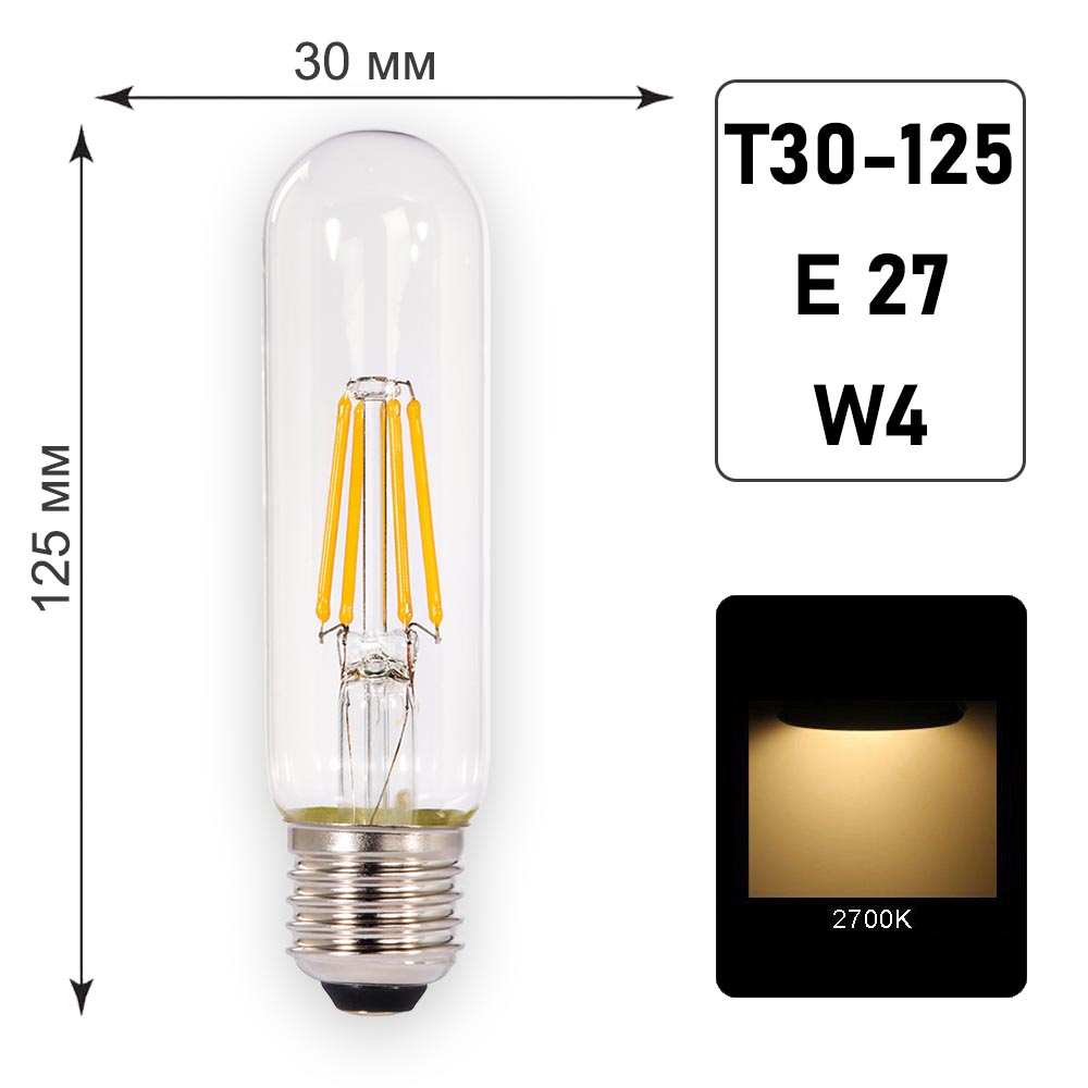 Лампа филаментная Т30 - 125 E27 W4 K2700