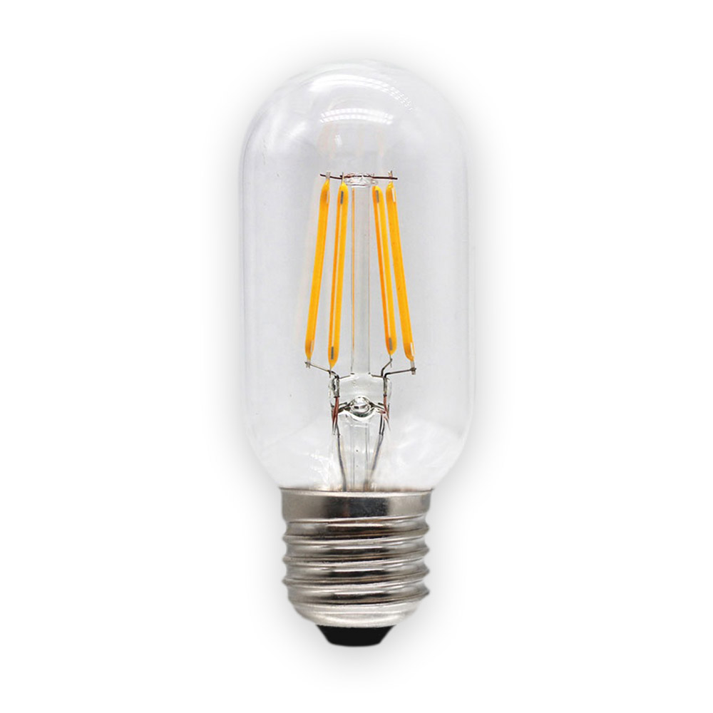 Лампа светодиодная Т45 E27 W4 K2700 – филаментный источник с потребляемой мощностью 4Вт. Тепловой диапазон испускаемого света 2700К. Гарантия от производителя – 20 000 часов.