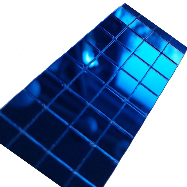 Лента самоклеящаяся зеркальная мозаика акрил 4см х 1м 10х10мм, синий