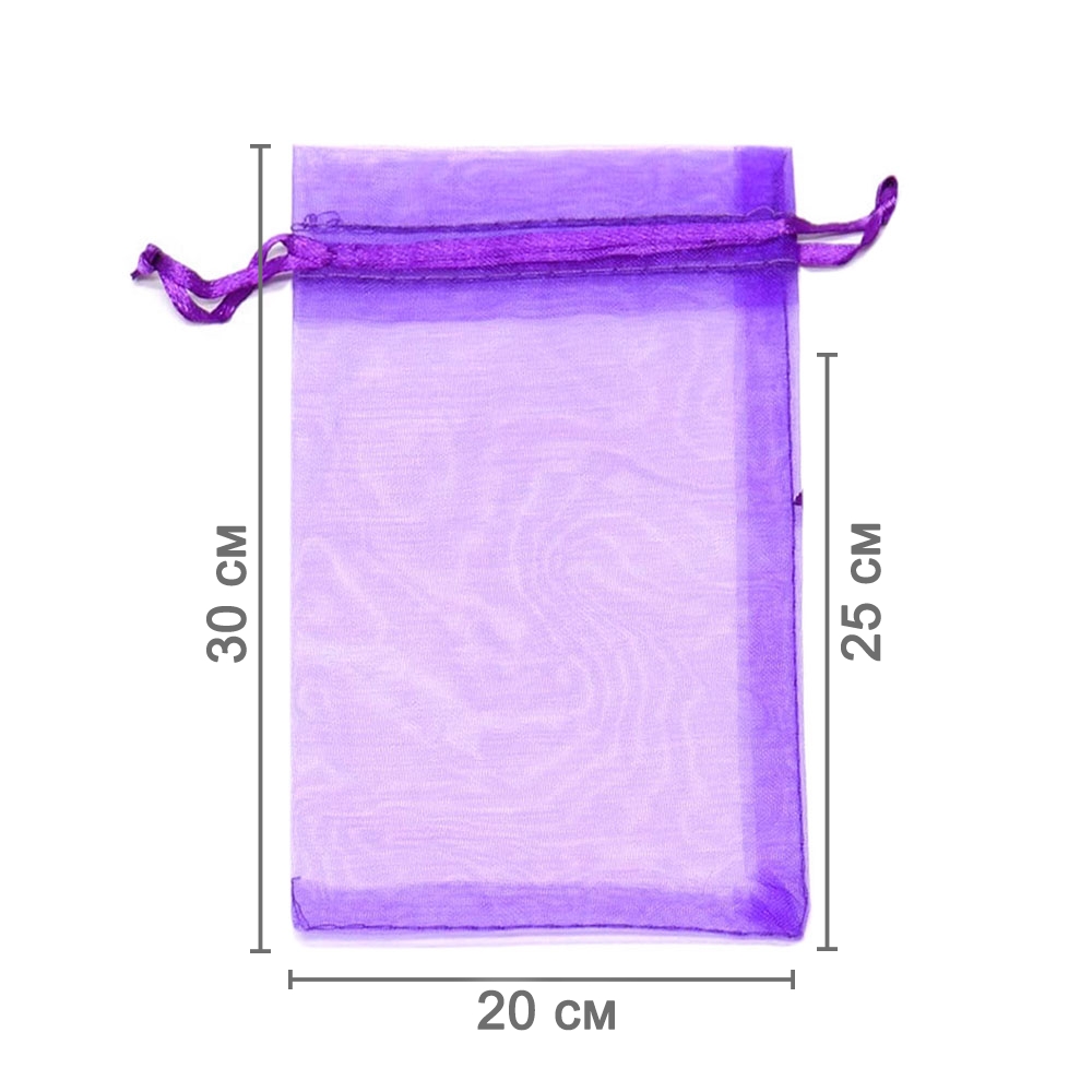 Мешочек из органзы 20 х 30 см — стильный аксессуар для упаковки средних и крупных предметов. Полупрозрачная ткань подчёркивает содержимое и придаёт аккуратный вид.