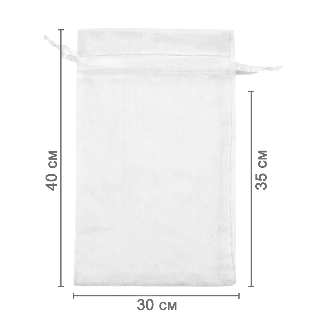 Мешочек из органзы 30 х 40 см — практичный аксессуар для упаковки крупных подарков и хранения предметов. Полупрозрачная ткань подчёркивает содержимое и придаёт праздничный вид.