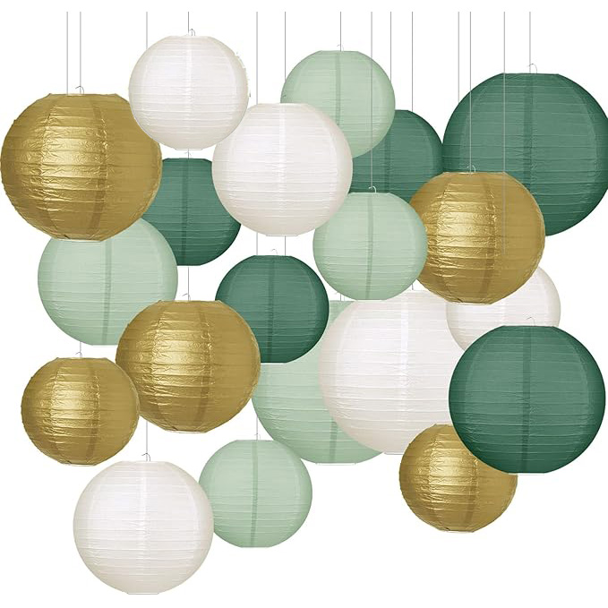 Набор подвесные фонарики 21 шт, белый+золото+фисташковый+т.фисташковый