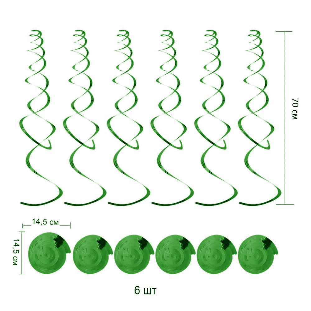 Спираль пластиковая 70см 6шт, зеленый