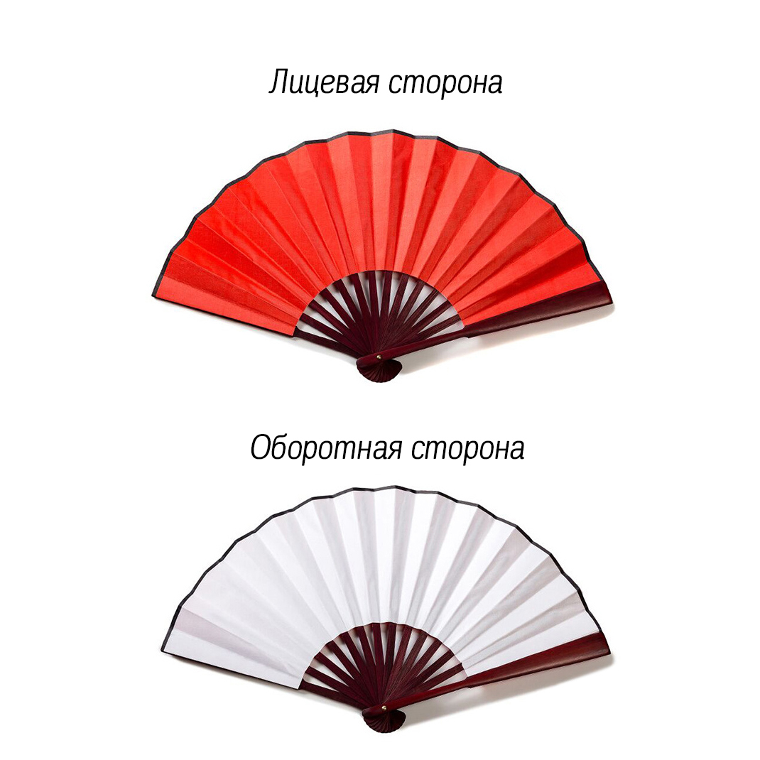 Двухсторонний складной веер для танца. Выполнен из бамбука и плотной ткани.