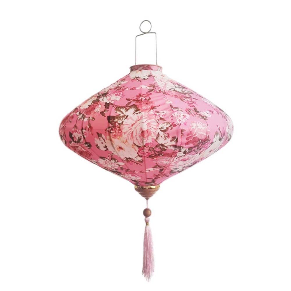 Это традиционные подвесные фонарики ручной работы, изготовленные из шелкового материала с элегантным цветочным узором, которые делают его изысканным и красивым.